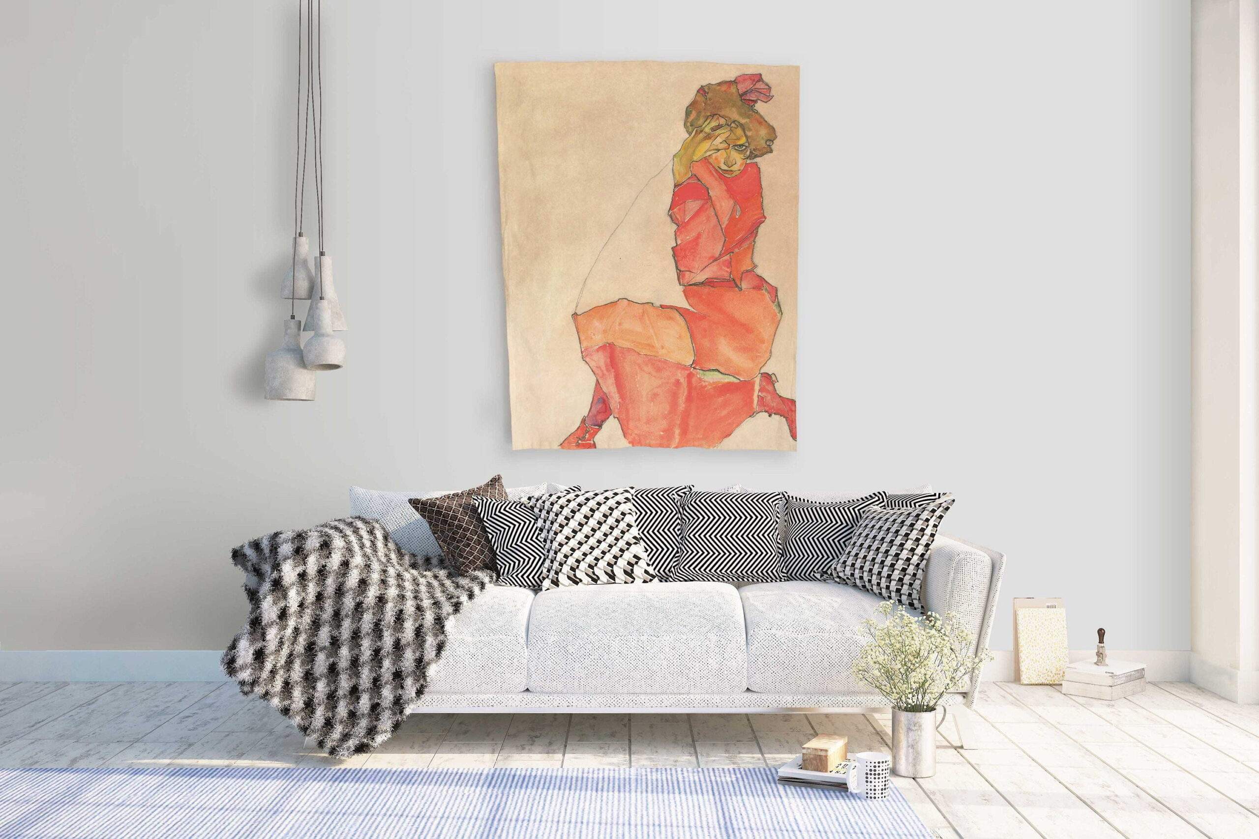 Wall tapestry Egon Schiele “Kneeling Female in Orange-Red Dress”.