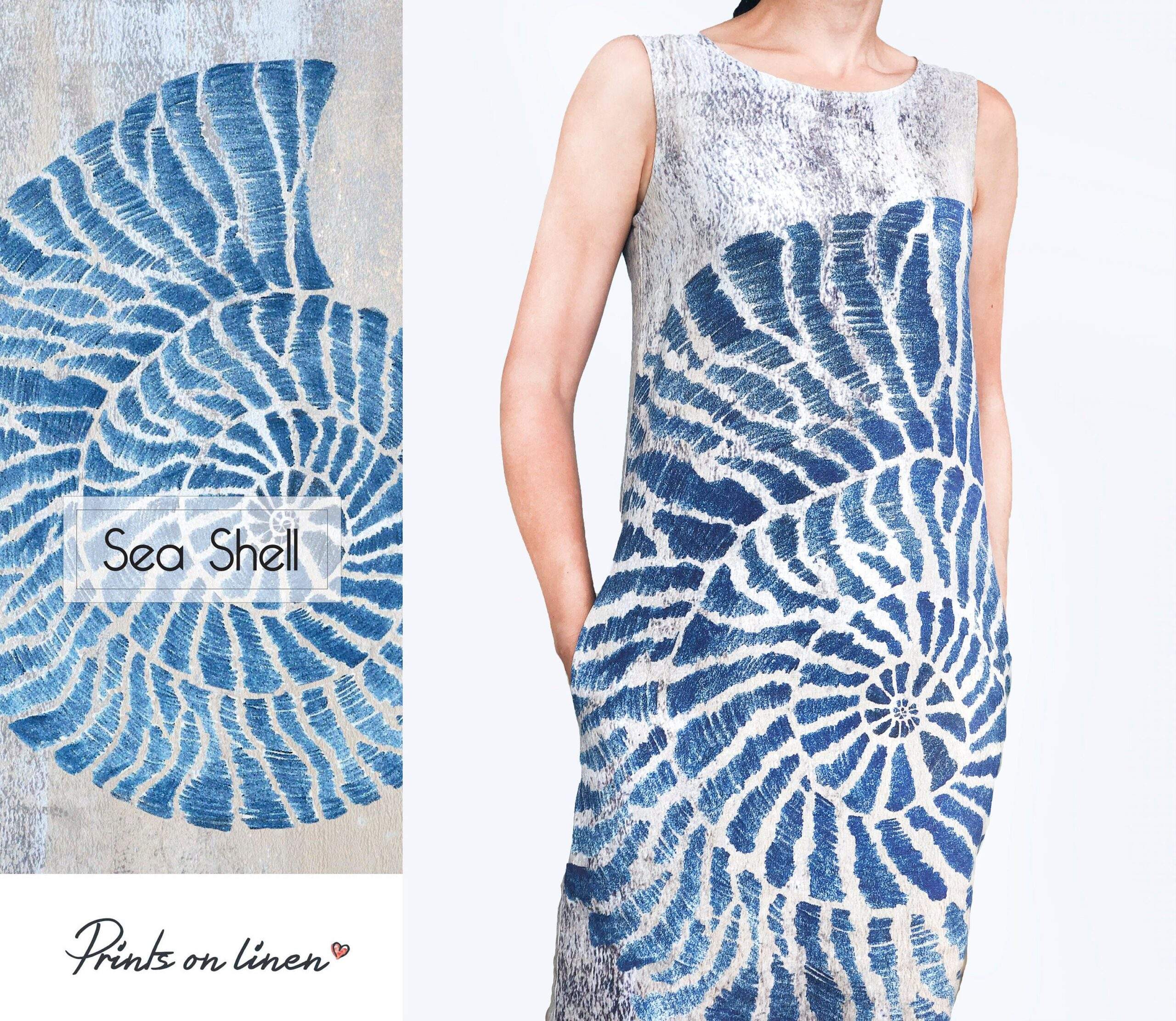 Linen women dress “Sea Shell”. Tunic style dress with pockets. Two designs are available: sleeveless linen dress or dress with short sleeves.