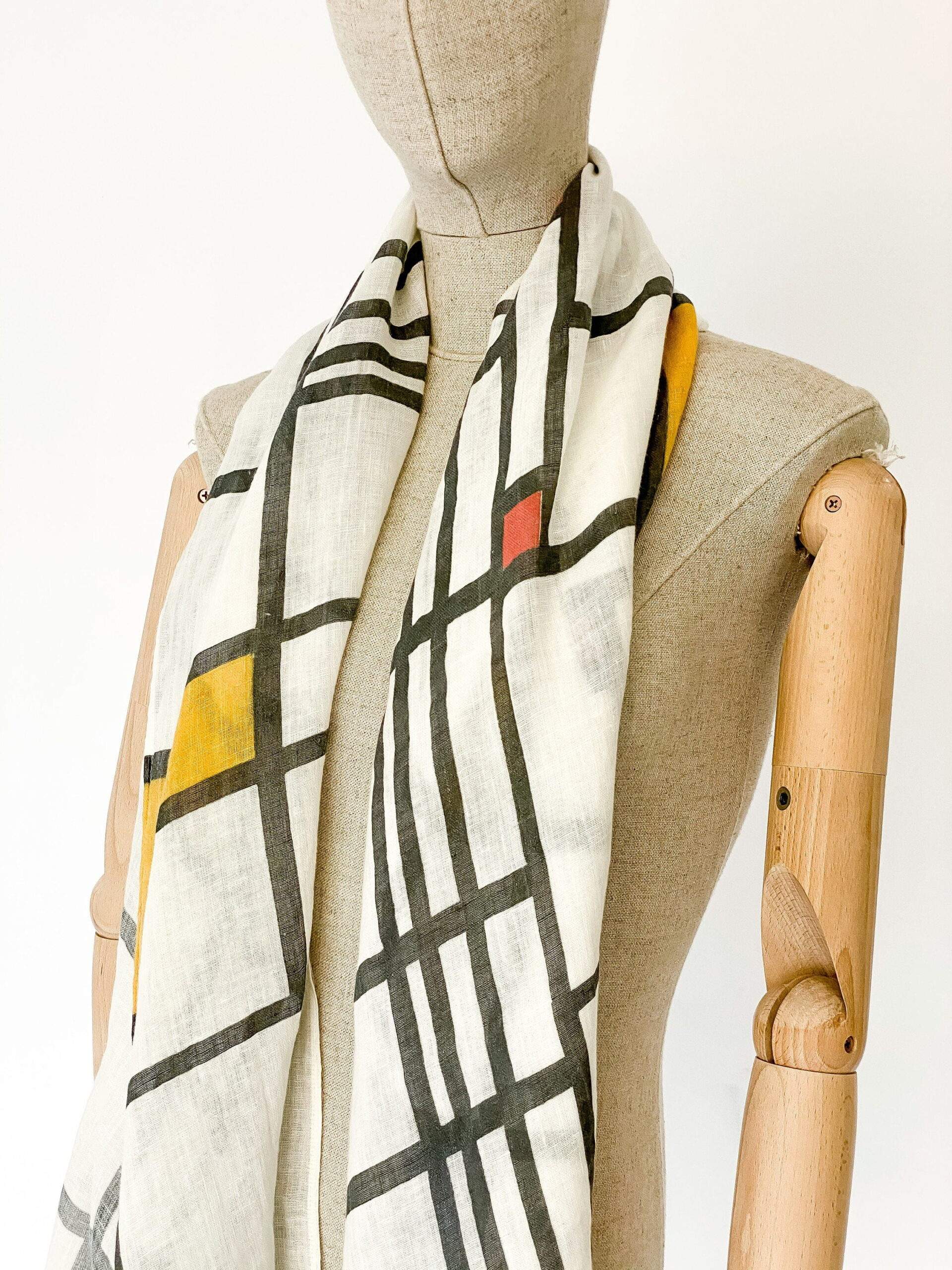 Hand made linen scarf “Composition II” by Piet Mondrian.