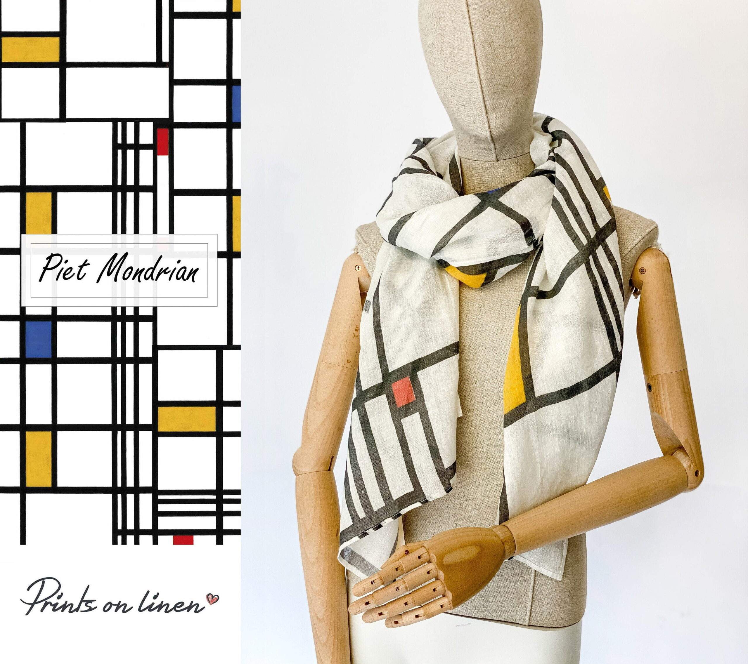 Women scarf, Piet Mondrian, Scarf, Linen scarf, blanket scarf, linen shawl, PR1215