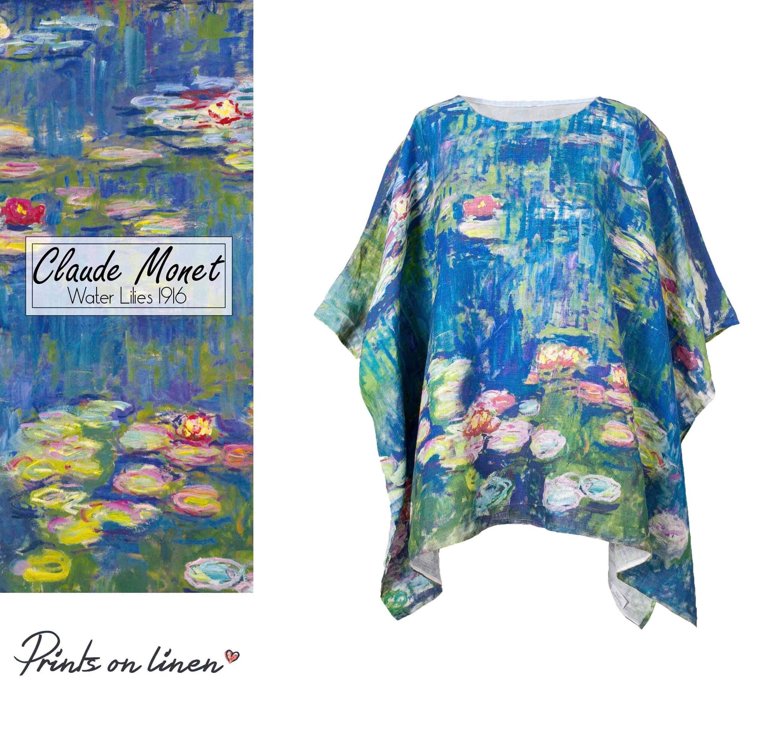 Women shirt, linen shirt, Claude Monet, Water Lilies, linen blouse, loose shirt, PR0977
