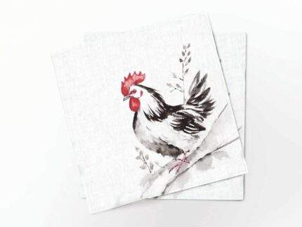 Linen towel, Watercolor Chicken, Rustic table decor, 100% linen, PR3639