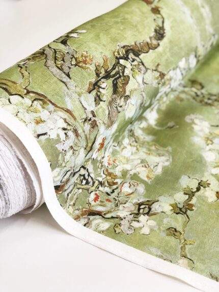 Apple Green, Vincent van Gogh, Almond Blossom, Linen fabric, Fabric by yard, fabric by meters, 100% linen, PR1275